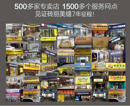 CUALI磚麗自2016年成立以來,一直深耕于美縫行業(yè),目前已有500+專賣店加盟,建立1500+服務(wù)網(wǎng)點(diǎn),并成為越來越多客戶的選擇,正是這些客戶的信任與支持,CUALI磚麗磚麗才能再接再厲。